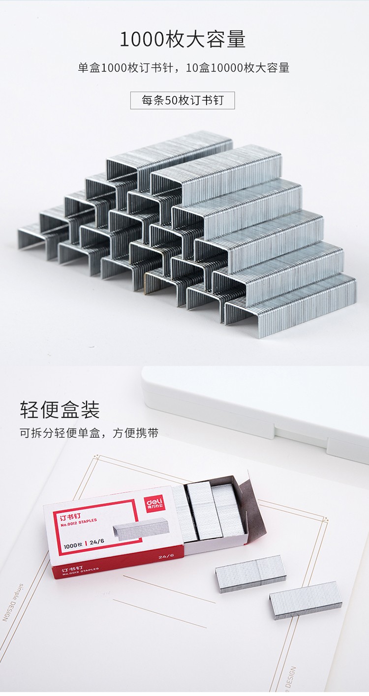 參數(shù) [品牌] 得力(deli) [型號(hào)] 12#訂書(shū)針 [毛重] 490G [產(chǎn)地] 中國(guó)大陸 [類型] 辦公用品 [單位] 盒 [材質(zhì)] 鐵